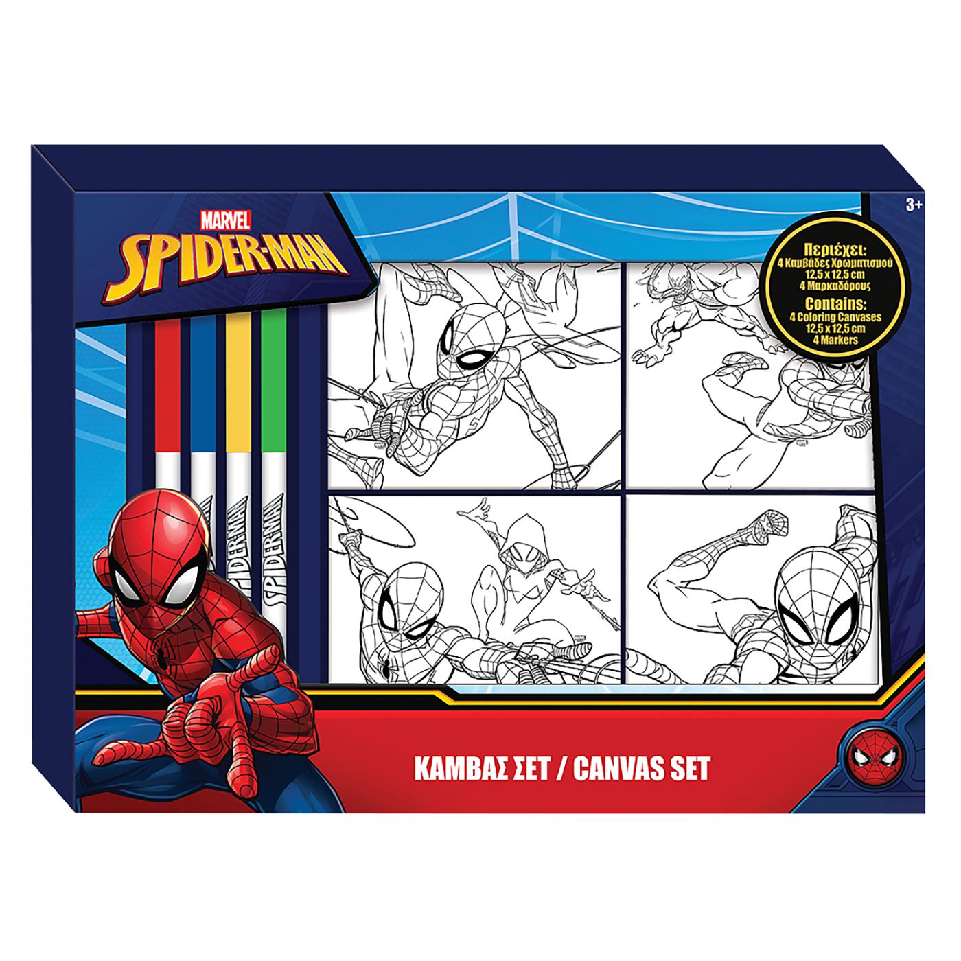 Καμβάς σετ 4τεμ με 4 Μαρκαδόρους Spiderman 37x27cm