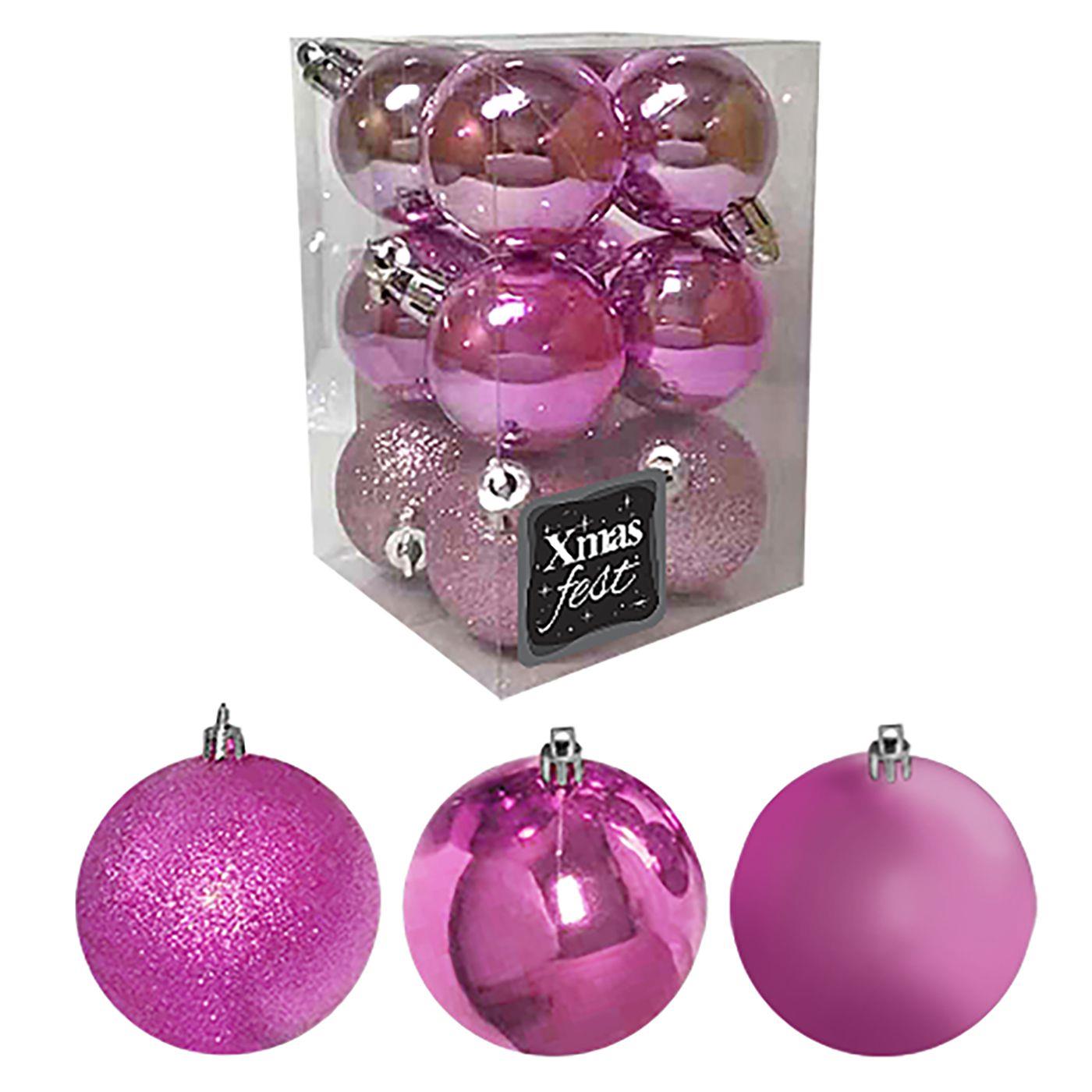 93-2526 Μπάλες ροζ μιξ πακ=12τεμ φ4 Φ4cm χονδρική, Χριστουγεννιάτικα χονδρική