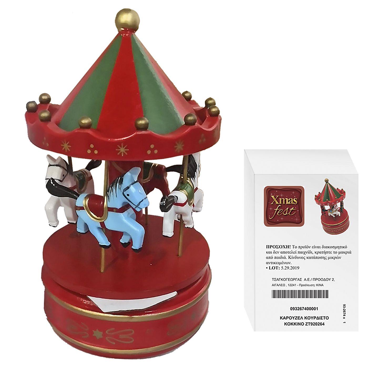 93-2674 Καρουζέλ Ξύλινο Κουρδιστό Κόκκινο 18x11cm χονδρική, Χριστουγεννιάτικα χονδρική
