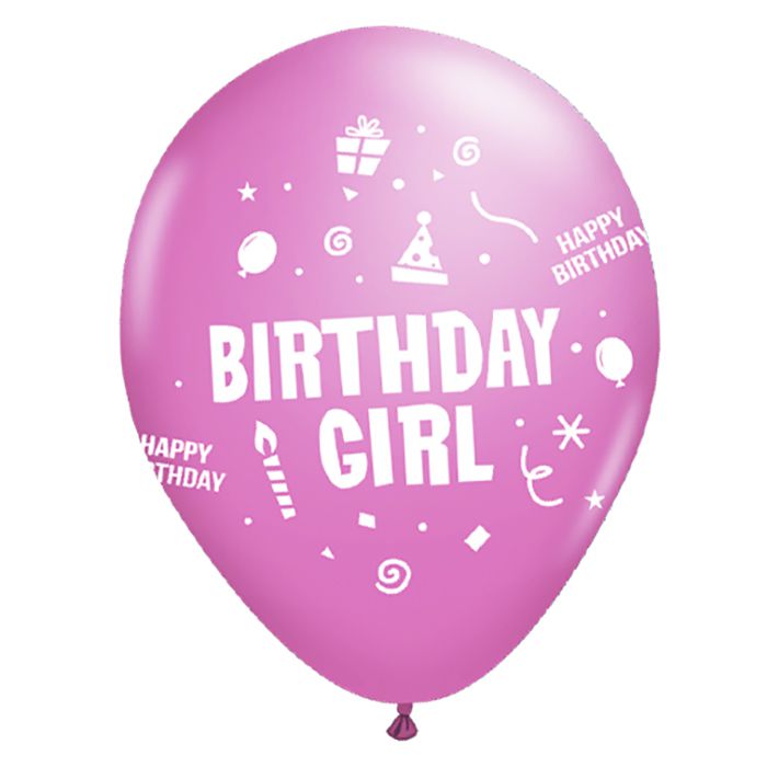 SET OF 6 9" BIRTHDAY GIRL BALLOONS